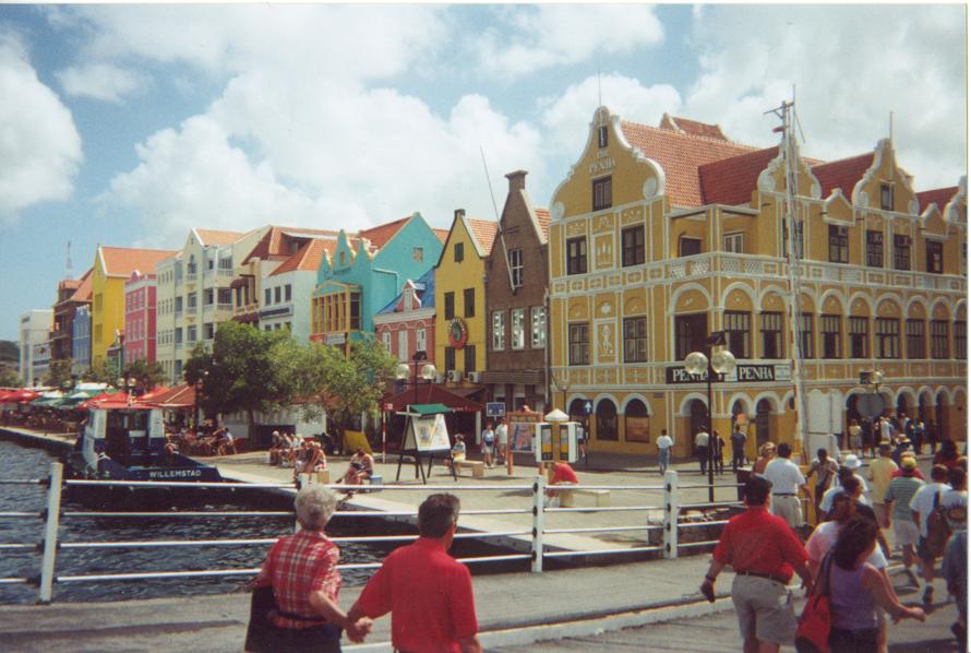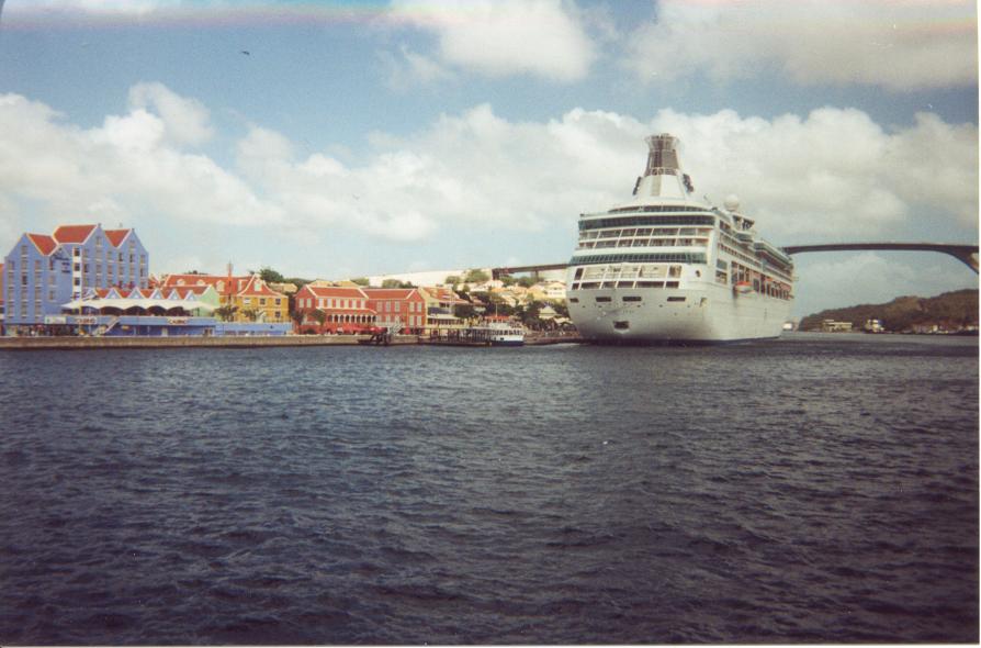 Punta / Willemstad is a busy port for tourism. It is the only natural bay that can be used for shipping on the island. What is not seen, is the refineries which are located further up the channel.